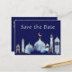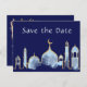 Arabian nights save the date postcards with pretty blue and gold illustrations on a royal blue background. These Arabian nights theme postcards are easily customized for your event by simply adding your details in the font style and wording of your choice. You can also change the background colour on the front and back. This is a printed design with no real glitter, foil, etc.