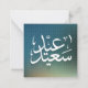 This elegant Eid Saeed Arabic Calligraphy personalized greeting card combines the timeless beauty of traditional script with a sleek, modern geometric background to create a sophisticated piece suitable for both Eid al-Fitr and Eid al-Adha.