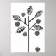 Arbre blanc noir sur arrière - plan blanc, avec un élégant arbre avec des feuilles pointillés et alignés et des fruits dans le style minimaliste B&W.