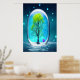 Un arbre à l'intérieur d'une bulle d'eau et de glace avec une boule violette avec la nuit noire dans l'arrière - plan. C'est un art généré par l'IA.