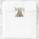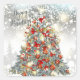sticker élégant Noël et Nouvel An - Ce design présente une illustration d'arbre de Noël décoré de luxe plein de boules rouges et or, arc et cadeaux. L'Arrière - plan est un effet de parties scintillant argenté.