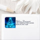 Étiquettes d'adresse de retour avec un arbre de Noël décoré de lumières de vacances bleu-électrique vibrantes. Étincelant et scintillant de joie festive.