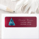 Arbre de Noël bleu sur un arrière - plan rouge. Un design élégant et sophistiqué. Customisez avec vos nom et adresse.