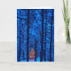 Un sapin de Noël coloré et lumineux dans la forêt foncée, aux tons bleus.