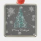 Décorez votre sapin de Noël en cette période de fêtes avec un ornement Turquoise d'arbre de Noël et de flocons de neige. Le design ornemental est composé d'un sapin de Noël artistique vibrant avec des flocons de neige tombants et d'un arrière - plan gris foncé. Autres cadeaux et objets de vacances disponibles avec ce design aussi.