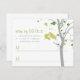 RSVP amusant et fantaisiste à coordonner avec Polka Dot Tree Inséparables Invitation Suite". Deux inséparables dans l'illustration de l'arbre moderne et abstrait.