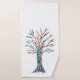 Cette serviette de bain unique est décorée d'une mosaïque de l'Arbre de la Vie qui a été faite de minuscules morceaux de verre aux couleurs vives.