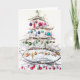 Arbre rustique chic avec des ornements aux couleurs vives sur la carte de Noël