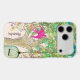 Oiseau Vintage tendance en rose néon et jaune avec arbre dessiné à la main coque iphone