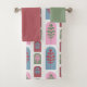 Ce kit de serviettes est doté d'un linge vert, d'une serviette à la main de betterave et d'une serviette de bain au design art déco de formes de dôme répétées avec des formes d'arbre à l'intérieur. Si vous aimez le design mais préférez différentes couleurs, envoyez-moi un message.
