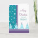 La carte de voeux de Joyeux Noël pour l'ami en turquoise élégante, pourpre, et le blanc avec l'arbre de Noël de fête et les flocons de neige modèlent, souhaitent à vos amis tout le meilleur cette saison des vacances avec cette carte de voeux d'amusement.