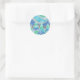 Un paysage hivernal moderne et stylisé avec des pins gelés et des flocons de neige étincelants. Sticker avec un design personnalisable vert, bleu, gris argenté et blanc pour vous permettre de personnaliser avec votre propre texte, images et idées. Un dessin numériquement crayon de couleur rehaussé par Jess Perry.