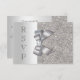 Cartes de réponse plates personnalisées pour RSVP formel pour tout événement - mariages, baby showers, fête d'anniversaire, sweet 16, célébrations de Quinceanera, fiançailles, douche de mariée, etc. Cartes de réponse personnalisées élégantes de couleur argentée avec un motif de paillettes imprimées scintillantes, des nœuds et des rubans vectoriels brillants et jolis, et des diamants d'image imprimés élégants et des bijoux bling et du texte gris foncé. Ces RSVP argentés élégants et glamour sont décorés des deux côtés. Cartes doubles élégantes, chic, tendance, modernes avec du glamour et de l'éclat. Veuillez noter : Toutes les invitations sur Zazzle ont des images imprimées plates. J'ai des produits assortis dans ma boutique. Le texte, la police et les couleurs de la police sont tous personnalisables pour répondre à vos besoins. Si vous avez besoin d'aide pour personnaliser votre produit, veuillez