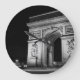 Black and white photography of Arc de Triomphe at night. Light trails of cars in motion are also in the view. Travel and tourism concept of Paris and France. Famous French landmark. Historical architecture.