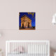 The Arc de Triomphe at night. Commissioned by Napoleon after the victory in the Battle of Austerlitz, it stands in the middle of the Place Charles de Gaulle, at the western end of the Champs-Élysées. At 51 metres (167 ft) high and 45 m (148 ft) wide, it is the second-largest triumphal arch in the world. The monument honours soldiers throughout French history, and houses the tomb of the unknown soldier.