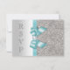 Cartes de réponse plates personnalisées pour RSVP formel pour tout événement - mariages, baby showers, fête d'anniversaire, sweet 16, célébrations de Quinceanera, fiançailles, douche de mariée, etc. Cartes de réponse personnalisées élégantes en argent et bleu sarcelle / turquoise avec un motif brillant imprimé pailleté, strass, sequins, noeuds et rubans vectoriels brillants et jolis, image stylée imprimée de diamants bling bijoux et texte gris foncé. Ces RSVP argent et sarcelle élégants et glamour sont décorés des deux côtés. Cartes doubles magnifiques, chic, tendance, modernes avec éclat et glamour. Veuillez noter : Toutes les invitations sur Zazzle ont des images imprimées plates. J'ai des produits assortis dans ma boutique. Le texte, la police et les couleurs de la police sont tous personnalisables pour répondre à vos besoins. Si vous avez besoin d'aide pour personnaliser votre produit, veuillez me contacter via ma boutique. Je serai ravi de vous aider.