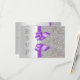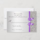 Cartes de réponse personnalisées pour mariage / invitations. Élégantes cartes de réponse double face de couleur argent et lavande avec un beau motif imprimé pailleté et paillettes, jolis graphismes imprimés brillants en forme de rubans et nœuds et une belle image imprimée de diamants et bijoux bling et police violette. Ces réponses de mariage classe, glamour, à la mode, vibrantes, lilas, lavande, violettes et argentées sont décorées des deux côtés. Belles cartes double face chic, tendance, modernes avec éclat et glamour. Veuillez noter : Toutes les invitations sur Zazzle ont des graphismes imprimés plats - pas de vrais nœuds, bijoux ou paillettes. J'ai des produits assortis pour les mariages dans ma boutique. Le texte, la police et les couleurs de la police sont tous personnalisables pour répondre à vos besoins. Si vous avez besoin d'aide pour personnaliser votre produit, veuillez me contacter via ma boutique. Je