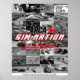 A collection of screenshots from the first season at Arca Sim Nation on one poster in black & white with a grunge style applied.