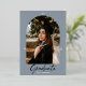 Une carte 2 en 1 pour annoncer votre diplômé et votre invitation pour célébrer l'obtention de votre diplôme. Doté d'une arche géométrique encadrant l'image combinée à une typographie moderne de style brossé sur un arrière - plan bleu avec des touches de véritable feuille d'argent. Au verso, remplissez toutes les informations pour votre célébration. Si vous souhaitez utiliser seulement le front pour annoncer le diplômé. Allez à "Modifier cette conception" et supprimez toutes les informations sur le dos. Vous avez besoin d'aide ou de pièces supplémentaires ? Veuillez me contacter en utilisant le bouton de contact ci-dessous.