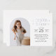 A modern Birthday invitation featuring your own photo in an arched shape. The title text is printed in real silver foil.