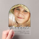 These sleek clear acrylic graduation announcements feature your graduate's photo front and centre. Accented with GRADUATE in a large black girly script with bold white drop shadows and decorative dot details, these arch style acrylic invitation cards blend the elegant with the modern. Easy to customize, two text templates of black wording leaves space for you to add your graduate's name - shown here double spaced for interest - and in a smaller font immediately below, your graduate's details. Use these sleek acrylic graduation invites as announcements and include a smaller paper card with the graduation party details; friends and family will have the acrylic card as a keepsake after the graduation celebration.