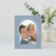 Chic budget-friendly dusty blue elopement announcement and reception invitation. The front features your wedding photo in an arch frame and "Happily Ever After Party" in elegant white typography. Under your photo, add your names, wedding date and location. On the reverse side, personalize your announcement and invitation, add your names in a signature-like script and input your wedding website address to create a scannable QR code for your guests to scan to RSVP online and obtain additional details.