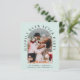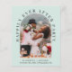 Budget-friendly mint green marriage announcement and reception invitation. The front features your wedding photo in an arch frame, "Happily Ever After Party" in elegant typography and your first names, wedding date and location. On the back, customize your announcement and invitation, add your names in a signature-like script and input your wedding website address to create a scannable QR code for your guests to scan to RSVP online and obtain additional details.