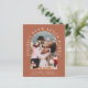 Chic budget-friendly terracotta elopement announcement and reception invitation. The front features your photo in an arch frame and "Happily Ever After Party" in elegant white typography. Under your photo, add your first names, wedding date and location. On the reverse side, personalize your announcement and invitation, add your names in a signature-like white script and input your wedding website address to create a scannable QR code for your guests to scan to RSVP online and obtain additional details.