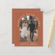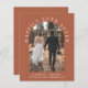 Elegant and budget-friendly elopement or smaller terracotta wedding announcement and reception invitation. The front features your wedding day photo in an arched frame and "Happily Ever After" in elegant white typography. Under your photo, add your first names, wedding date and location. On the reverse you can personalize your announcement and add party or reception details and add your names in a signature-like white script.
