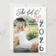 Celebrate her incredible achievement with this personalized graduation invitation for the Class of 2026, featuring the cheerful phrase “She Did It!” in modern script typography. Designed with a white, delicate pink bow accent, and elegant vertical class year layout, this invitation is perfect for highlighting a confident, accomplished graduate.