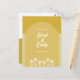 Unique yet beautiful way to send invites to friends and loved ones. This wedding invitation postcard is shown in the arch style and has a nature theme of standing flowers at the bottom. Plus, there is a QR code on the back for RSVP responses. Space is also provided for recipient addresses. Shown in gold (front and back). Just change the text to suit your needs. Use the template to personalize.