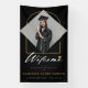 A modern minimalist graduation party celebration welcome photo banner design featuring a minimalist arch tassel frame on a diamond shaped (mortarboard) photo.