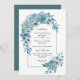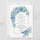 This beautiful boho arch with teal and aqua blue flowers and leaves summer wedding invitation is the perfect way to invite your guests to your special day. The lovely wedding design showcases an arch frame with dalia and rose flowers and foliage in blue tones that will add a touch of elegance and sophistication to your wedding. The back of this stunning invitation is a solid teal colour, providing a unique contrast to the front.