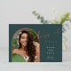 Une élégante conception de faire-part de graduation avec une mise en page unique, cette carte chic dispose d'une photo verticale en forme d'arc sur un riche arrière - plan vert jungle, avec "Classe de 2022" en feuille d'or rose typographie de script lettré à la main. Personnalisez avec le nom et l'école de votre diplômé, et ajoutez un message personnel au dos, ainsi qu'une photo supplémentaire. Un design époustouflant dans une palette de couleurs luxuriantes pour annoncer votre jalon spécial.