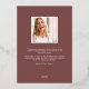Le faire-part moderne de graduation de photo comporte une photo verticale ou portrait orientée dans un agencement unique en forme d'arcade, sur un arrière - plan rose rose poussiéreux accentué de garniture en feuille d'or rose. Le nom du diplômé et l'année de fin d'études apparaissent en haut, avec le nom de l'école en bas à droite. Ajoutez un message personnel à l'arrière, ainsi qu'une photo supplémentaire.