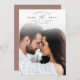 A simple and elegant save the date design featuring modern lettering with calligraphy script accents. Perfect for vertical photos with ample light or white space at the top, this design features your wedding date arched across the top, with "save the date," your names, and wedding location beneath.