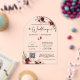 This acrylic invitation features an elegant, stunning, and a vibrant watercolor marsala and pink floral arrangement with an elegant calligraphy script wording "the wedding of" and "reception to follow". Please note: The wording of "the wedding of" and "reception to follow", the watercolor floral bouquet arrangement, floral bouquet, the lines, and other graphic artwork elements cannot be deleted, edited, or changed. It's easy to customize this wedding invitation -- just personalize the text wording and replace the QR code with yours.