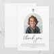 A beautiful way to express gratitude for loved ones coming to your child's First Holy Communion, this modern and elegant thank you card features your custom photo in a modern arch shape, "Thank You" in a script font underneath. You can also personalise it with your own message to create a keepsake that truly reflects this special milestone. Perfect for sharing your appreciation with family and friends!