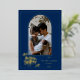 Arched Photo Merry Christmas and Holly on Dk Blue Foil Holiday Card