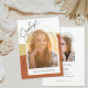 This stunning graduation party invitation features an arched photo on the front and a second on the back. The design is accented with the colour terracotta and a faux textured gold colour. The word "graduate" appears in a modern script. Custom text, on the back, allows you to add your party invitation details.