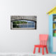 This lovely wide arched window frames a sea view. The window with its 12 panels has a graceful arch to the top edge and is set in a traditional stone wall typical of Scottish coastal towns. The peaceful scene beyond shows the sea meeting the coast where there are green leafy trees and a small stone defence wall with a tower. This picture creates a beautiful window effect when hung on your wall, creating a scenic view from any room.