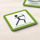 Archer with his bow black, green archery beverage coaster That displays a minimalist icon of a black silhouette of an archer and your text on white background with green border.