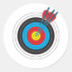 Archery shooting range target graphic with arrows hitting the bullseye.