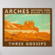 Arches vector artwork design of Three Gossips sandstone tower atop a pedestal within Courthouse Towers cluster. The park lies north of Moab in the state of Utah. Bordered by the Colorado River in the southeast, it’s known as the site of more than 2,000 natural sandstone arches.