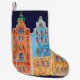 Architectural seamless border pattern on a dark bl small christmas stocking