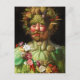 Arcimboldo Rudolf II postcard. Oil on panel from 1590. Giuseppe Arcimboldo was a remarkably unique painter who was famous during his time for his wild portraits composed of fruit, vegetables, fish and flowers. Rudolf II depicts the Habsburg emperor as Vertumnus cleverly utilizing gourds, pears, grapes, cherries, figs, plums, lettuce, asparagus and flowers. A fun and intriguing work for fans of Arcimboldo, Vegetable art, and late baroque paintings.