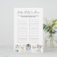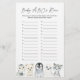 Arctic animals themed baby shower ABC's race game card features a watercolor winter animals illustration and watercolor greenery eucalyptus garland and elegant handwritten style font.