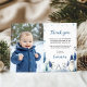 Our Arctic Animals Birthday Photo Thank You Card is a charming way to send gratitude to guests who celebrated a little one's special day. This card features a playful arctic theme with adorable animals like polar bears, penguins, and foxes, surrounded by snowy landscapes. Soft pastel colours like light blue, white, and hints of silver create a cozy, wintry vibe. A spot for a personalized photo of the birthday child adds a sweet, personal touch. The card’s message is warm and simple, making it perfect for saying "thank you" in style, capturing the magic of a first birthday in the Arctic!