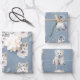 A winter-themed gift wrap paper arctic animal holiday set featuring a young watercolor white fox, polar bear, and penguin in a blizzard of blue and white snowflakes. Perfect for a Winter Birthday for the animal loving person or child. Similar holiday stickers in our store.