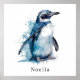 Arctic Azure Watercolor Penguin, custom Poster